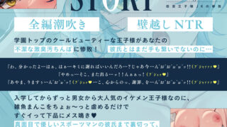 今すぐ読む!続きを今すぐ読む!【全編潮吹き×壁越しNTR】低音王子様JKの惨敗〜汚ちんぽに屈してクール崩壊メス鳴き浮気〜発売日: 2026年2月27日ボリューム: 6本 (約72分)+αジャンル: 処女、中出し、退廃・背徳・インモラル、男性...