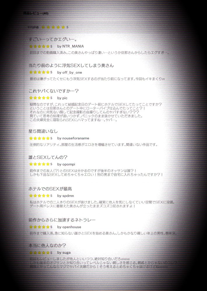 ジャンル: ギャル、人妻・主婦、巨乳、盗撮・のぞき、寝取り・寝取られ・NTR、中出し、浮気、おっぱい、専売、男性向け、成人向け、動画配信・撮影、寝取られ・NTR
