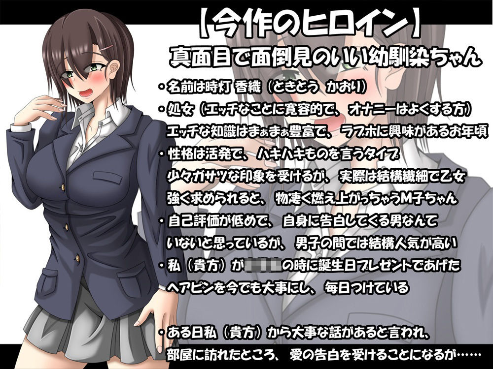 ジャンル: 処女、幼なじみ、中出し、フェラ、パイズリ、ラブラブ・あまあま、恋人同士、おっぱい、純愛、男性向け、成人向け、手コキ